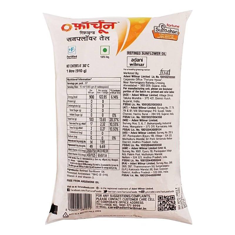 Fortune Sunlite Refined Sunflower Oil, 1L